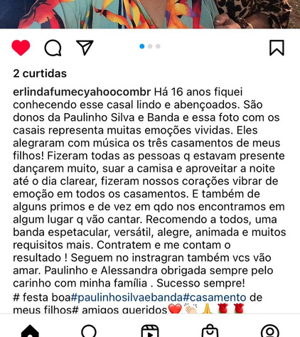 Somos Paulinho e Alessandra, uma dupla musical com mais de 20 anos de experiência no mercado de entretenimento. Nossa trajetória começou com a paixão pela música, que nos uniu e nos levou a criar um projeto único e personalizado para nossos clientes. Paulinho, natural de Salvador, Bahia, sempre viveu e respirou música, enquanto Alessandra, mineira de Belo Horizonte, encontrou seu verdadeiro chamado na música após uma carreira em contabilidade. Juntos, formamos o "Paulinho Silva e Banda", um duo que transforma eventos em experiências memoráveis.