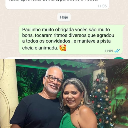 Somos Paulinho e Alessandra, uma dupla musical com mais de 20 anos de experiência no mercado de entretenimento. Nossa trajetória começou com a paixão pela música, que nos uniu e nos levou a criar um projeto único e personalizado para nossos clientes. Paulinho, natural de Salvador, Bahia, sempre viveu e respirou música, enquanto Alessandra, mineira de Belo Horizonte, encontrou seu verdadeiro chamado na música após uma carreira em contabilidade. Juntos, formamos o "Paulinho Silva e Banda", um duo que transforma eventos em experiências memoráveis.